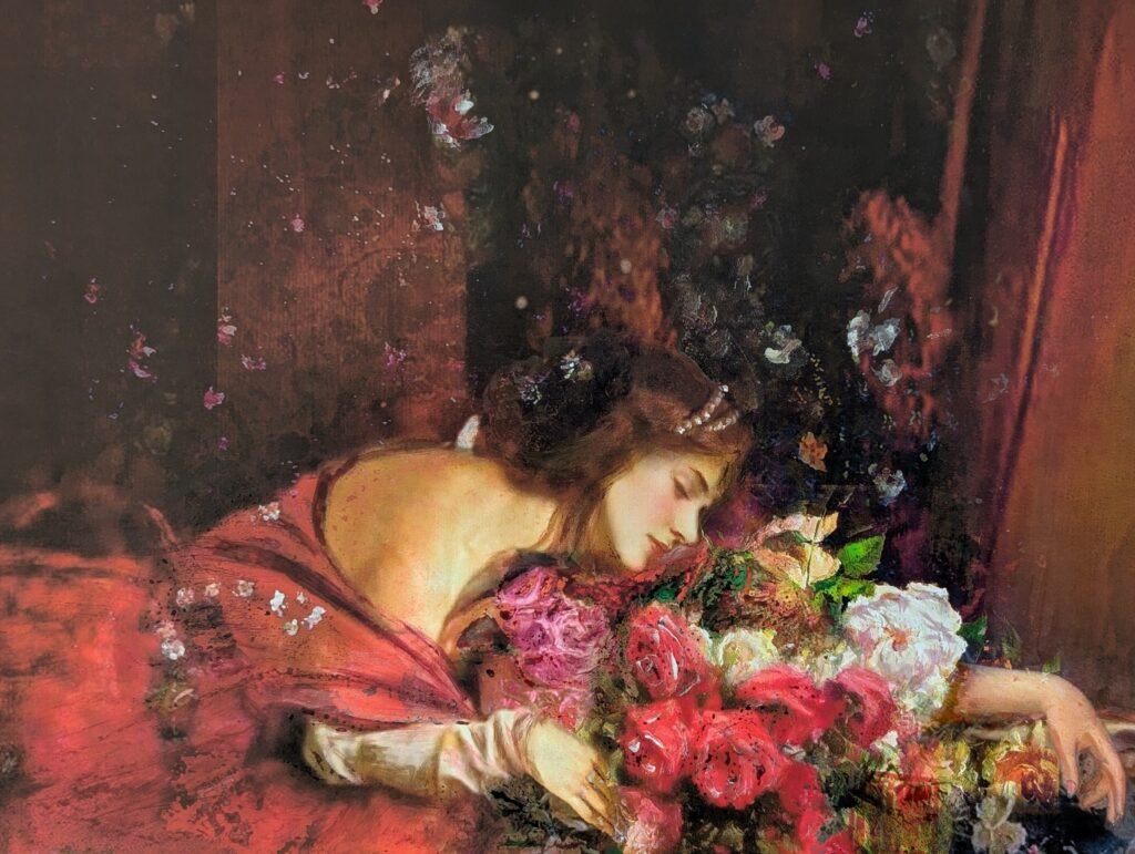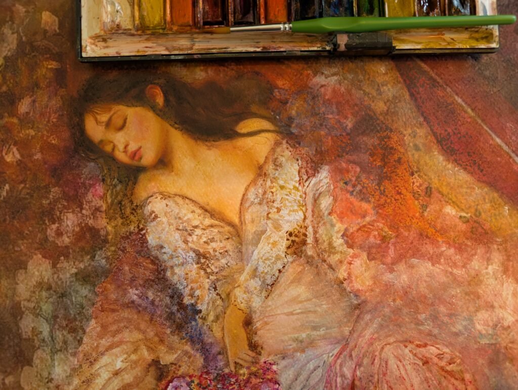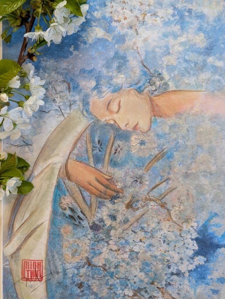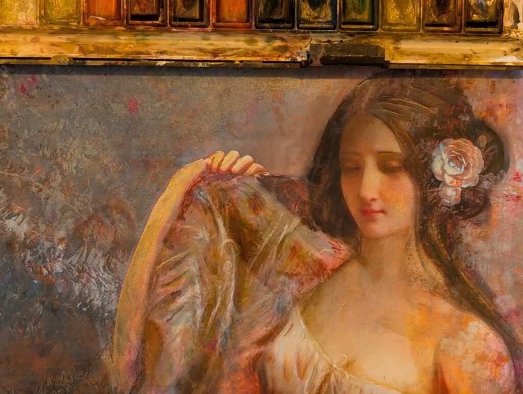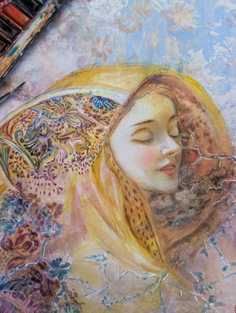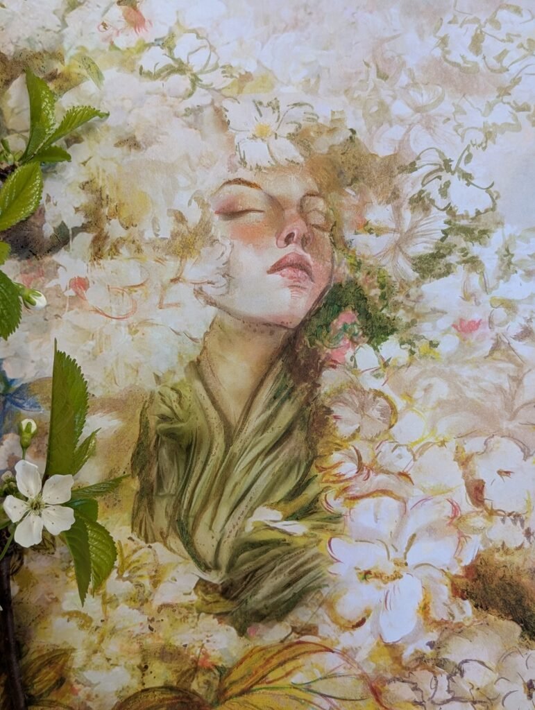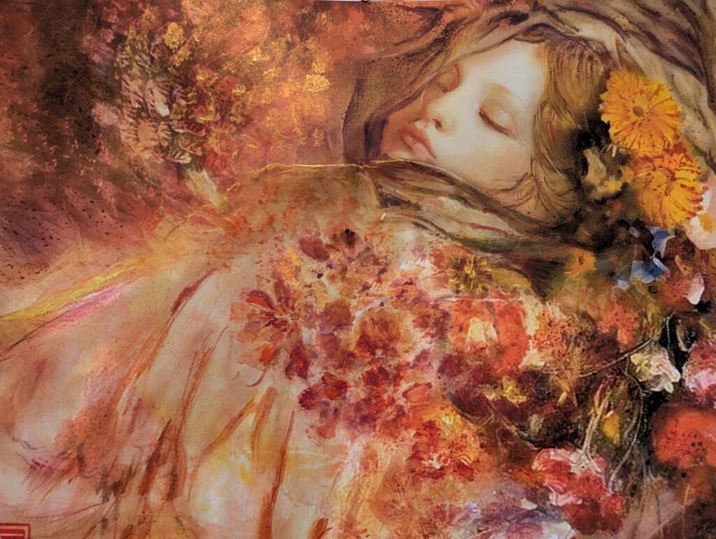 Each painting captures a girl in slumber, characters born from the pages of AlefA. Their dreams unfold in brushstrokes that drift from mist to clarity, each canvas blooming with a different flower, echoing the emotions they carry. These dreamscapes shimmer between the digital and the traditional, between the forgotten and the becoming. This is only the beginning, their stories and dreams will awaken again in Part Two of the exhibition this October.